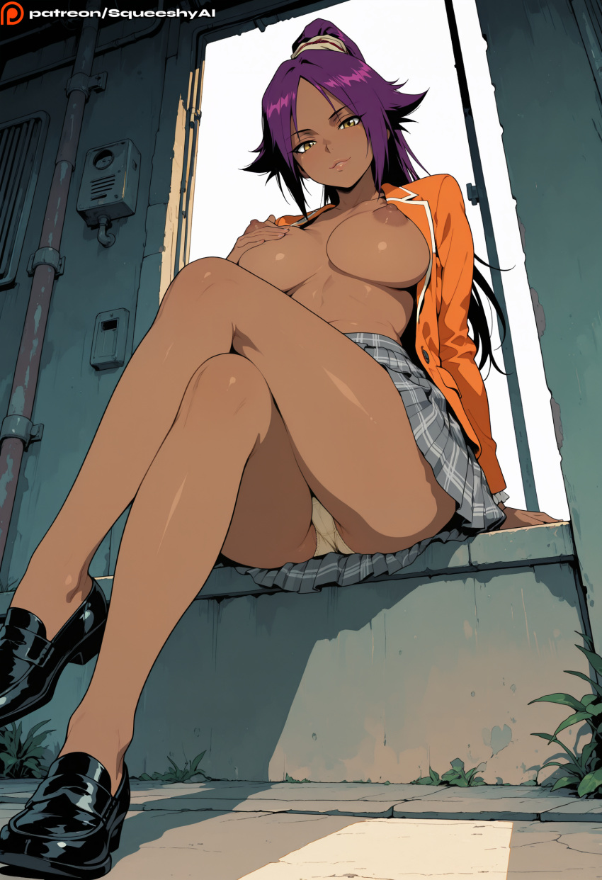 Tags: 1girlsai generatedbig assbig breastsbleachblushbustycrossed legscurvydetailed backgroundeyesfacefemalefrom belowheavyhipshuge breastsimageboardlooking pleasuredmale/femalemouthnipple slipnipplesnudeopenperky breastspinkpleasurepuffy nipplesrule 34shihouin yoruichisolosqueeshyaisubmissivethickthighswide