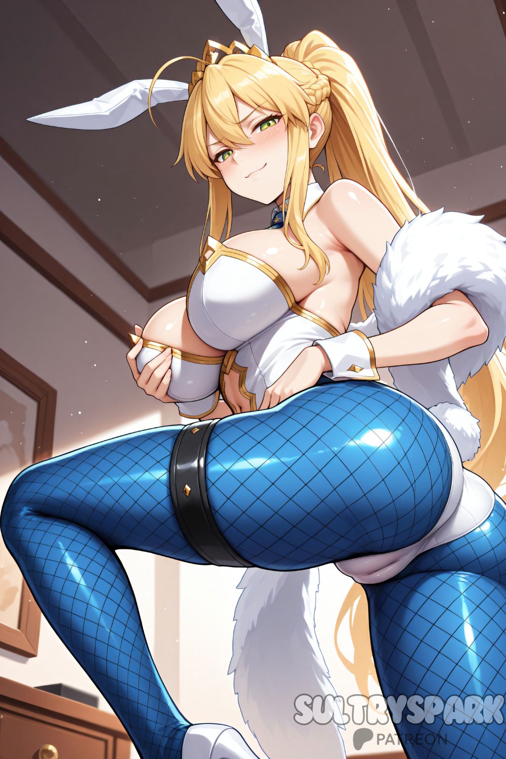 Tags: ahogeai generatedanimal earsartoria pendragonartoria pendragon (fate)artoria pendragon (swimsuit ruler)assbangsbare shouldersblonde hairblue pantyhoseblushbraidbreastsbunnysuitclosed mouthclothing cutoutdetached collarfate (series)fate/grand orderfemalefishnet pantyhosefishnetsfrench braidfutarushgreen eyeshair between eyeshigh heelshighleghighleg leotardimageboardlarge breastsleotardlong hairlooking at viewernavel cutoutnecktiepantyhosepatreonpatreon usernameplayboy bunnyponytailrabbit earsrule 34sidelockssmilesolosultrysparkthigh strapthighstiarawhite footwearwhite leotardwrist cuffs