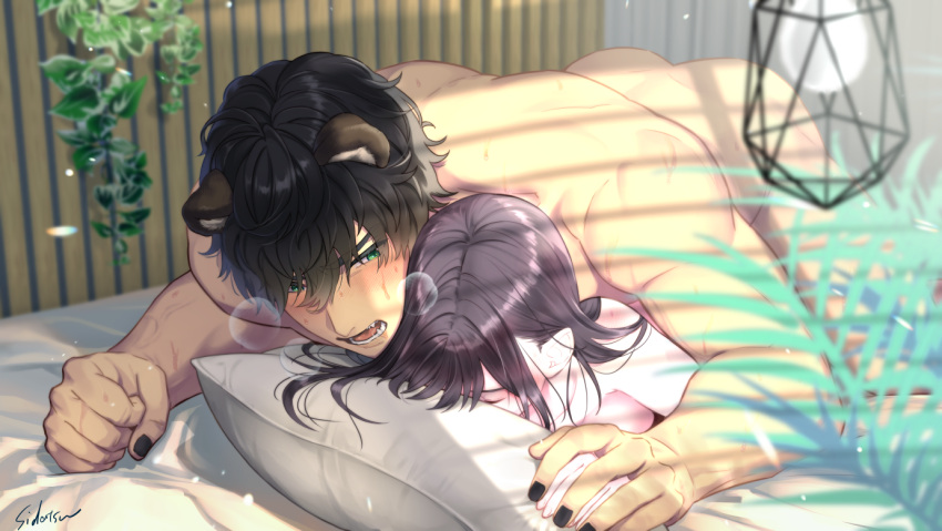 Tags: 1boy1girlsambiguous penetrationanimal earsbear earsbedblack hairblushcompletely nudefangsfemalegreen eyesimageboardindoorsmalenail polishnudeoriginalpillowrule 34sexshidatsu takayukistraight