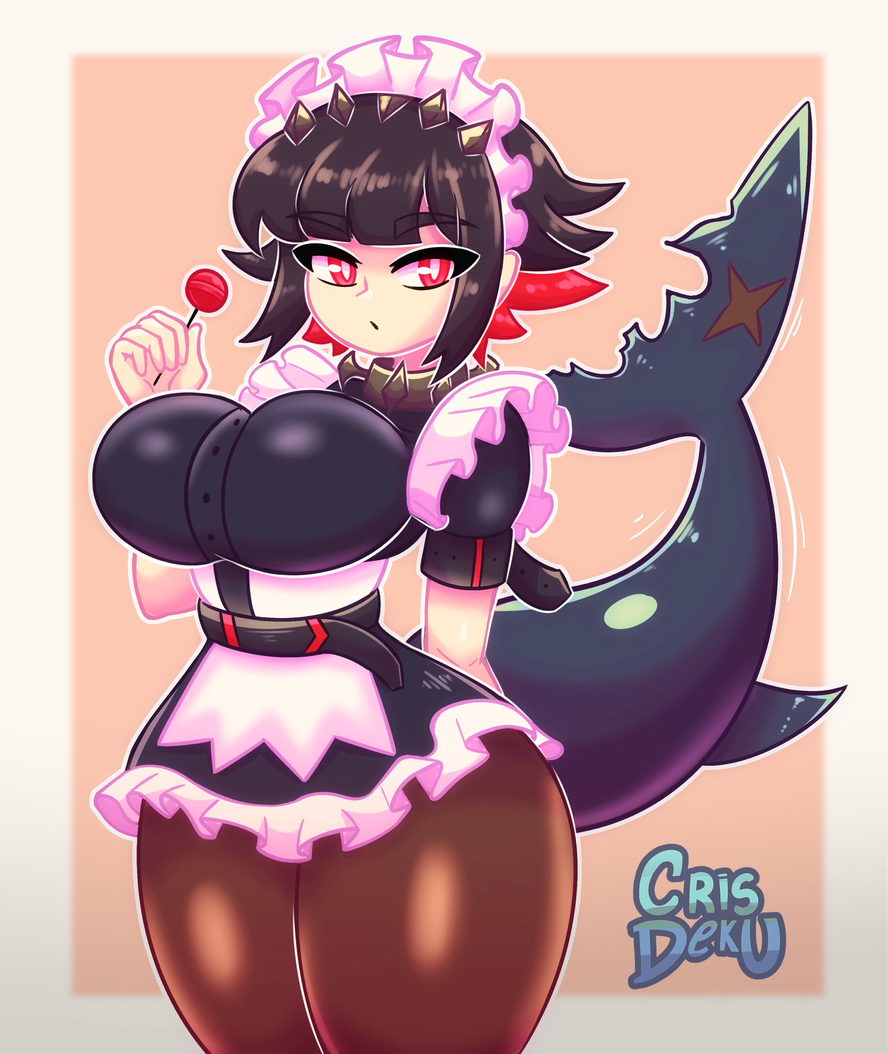 Tags: big breastsbig thighsbig tittiesbreastsclothingcurvaceouscurvaceous femalecurvaceous figurecurvycurvy figurecurvy hipsfemalefemale focusfemale onlylooking at viewermaidmaid headdressmaid uniformred eyesshark girlshark tailshort hairthick thighsthigh highs
