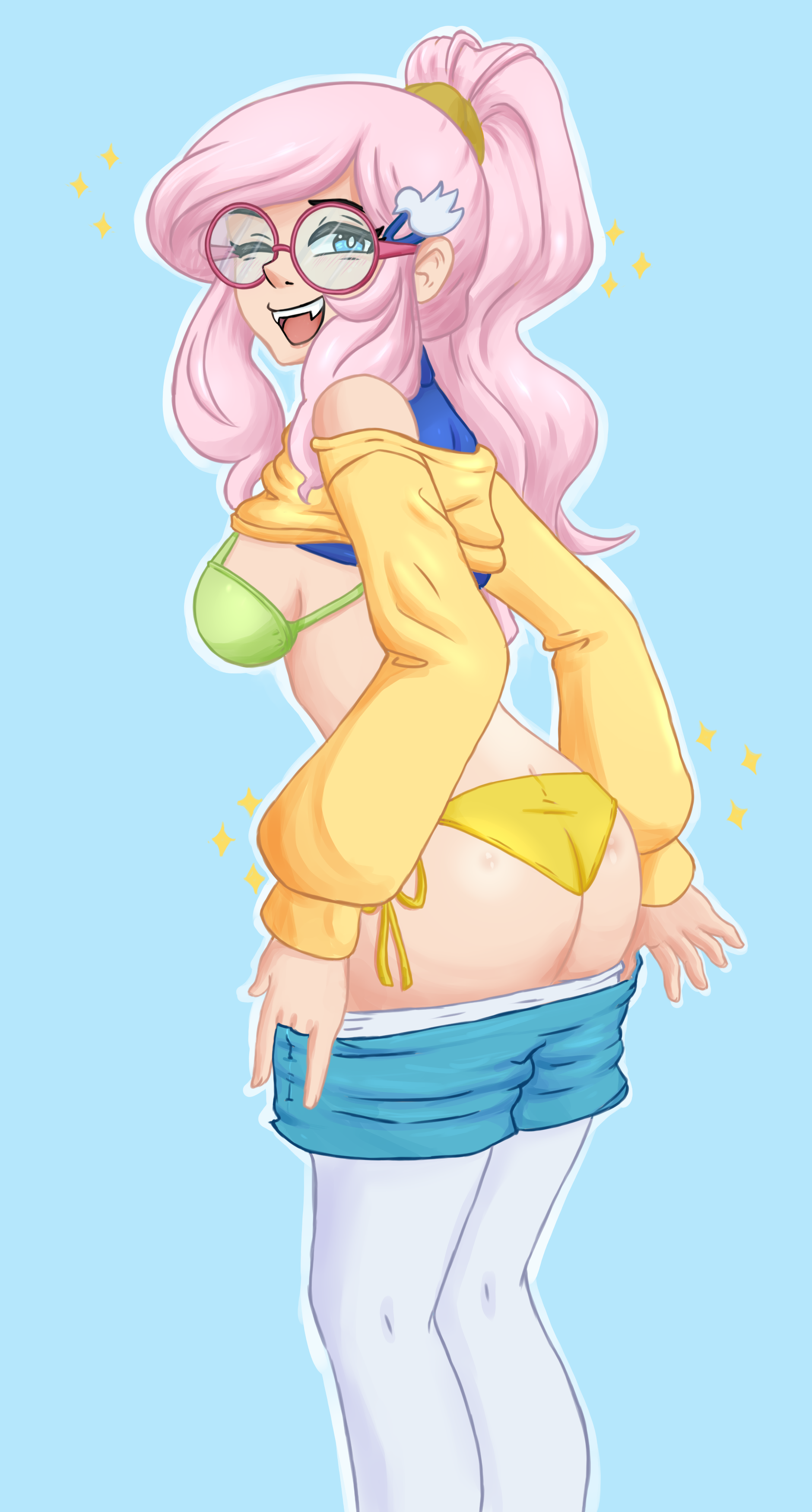 Tags: 1girlsbikiniblack bikiniblue eyesevil smileglassesgringrinning at viewerlegsnerdy femalepants downpink hairponytailpovshortssmilesmiling at viewerundressingviewed from belowwhite skinwinkwinking at viewer