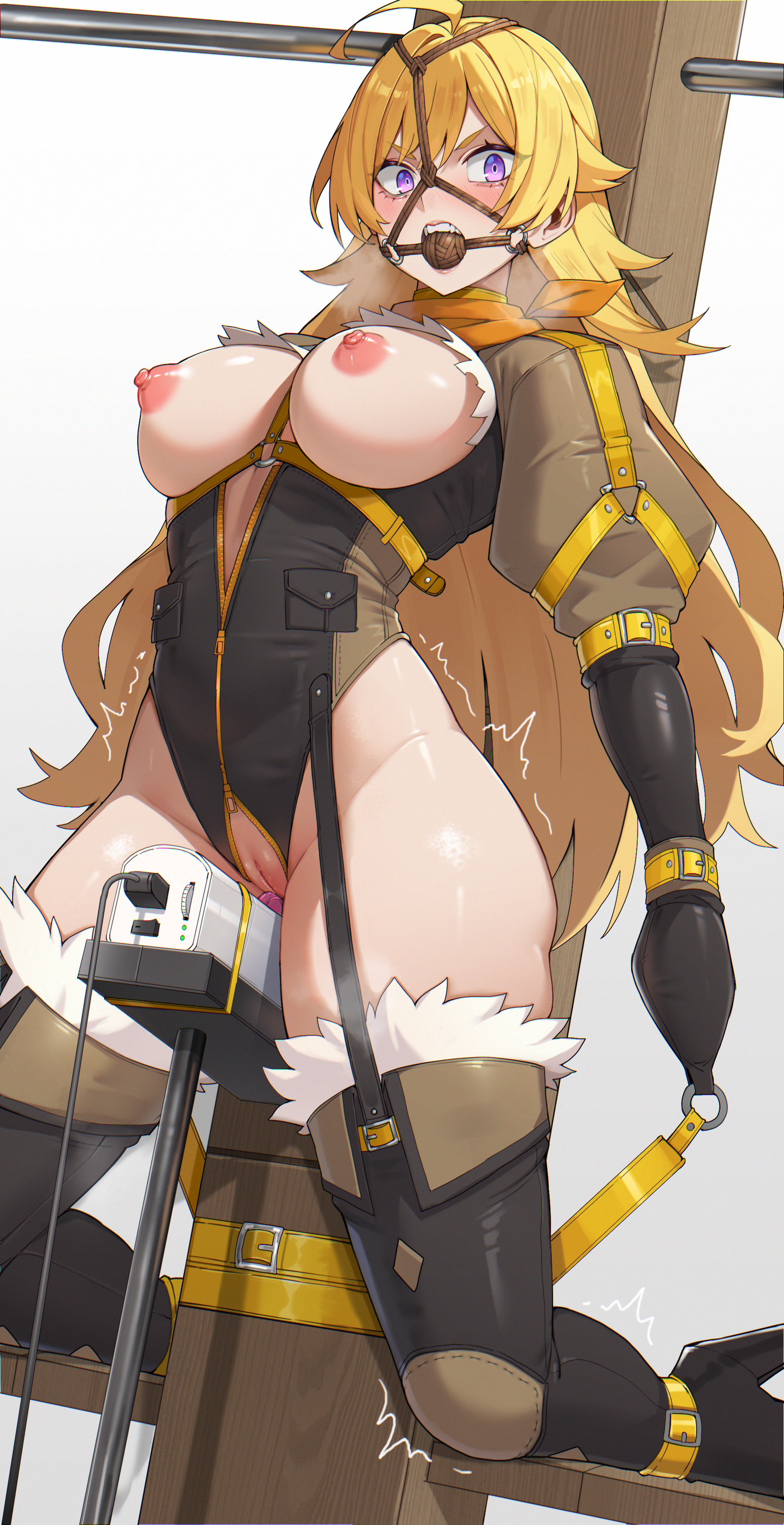 Tags: ahogearms behind backball gagblonde hairblushbondagebootsboundbreastsfemalegaggag harnessgaggedhigh heelsjacketlarge breastslong hairnipplespurple eyespussyrestrainedseparated armsseparated legsskindentationsolothigh bootsvery long hair