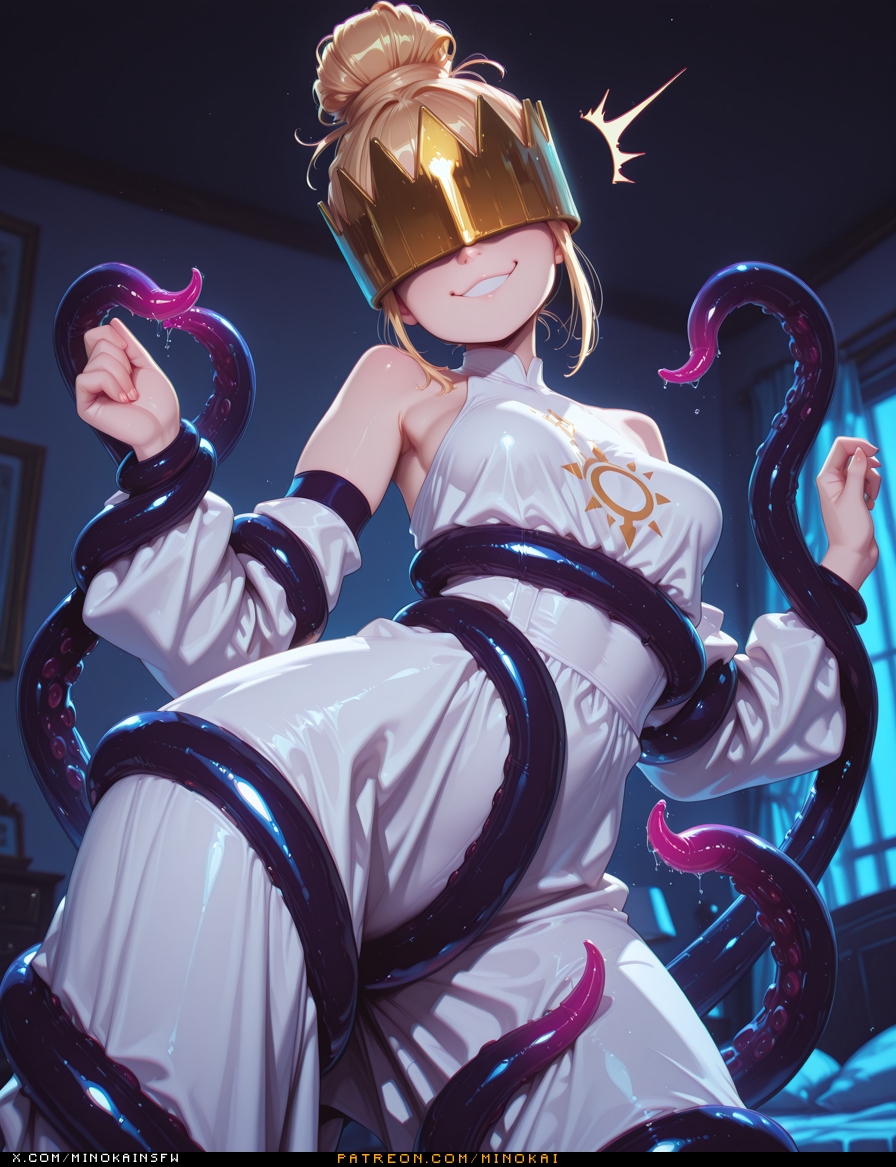 Tags: 1girlsblonde hairfully clothedmedium breaststentacletentacles around armstentacles around legstentacles on female