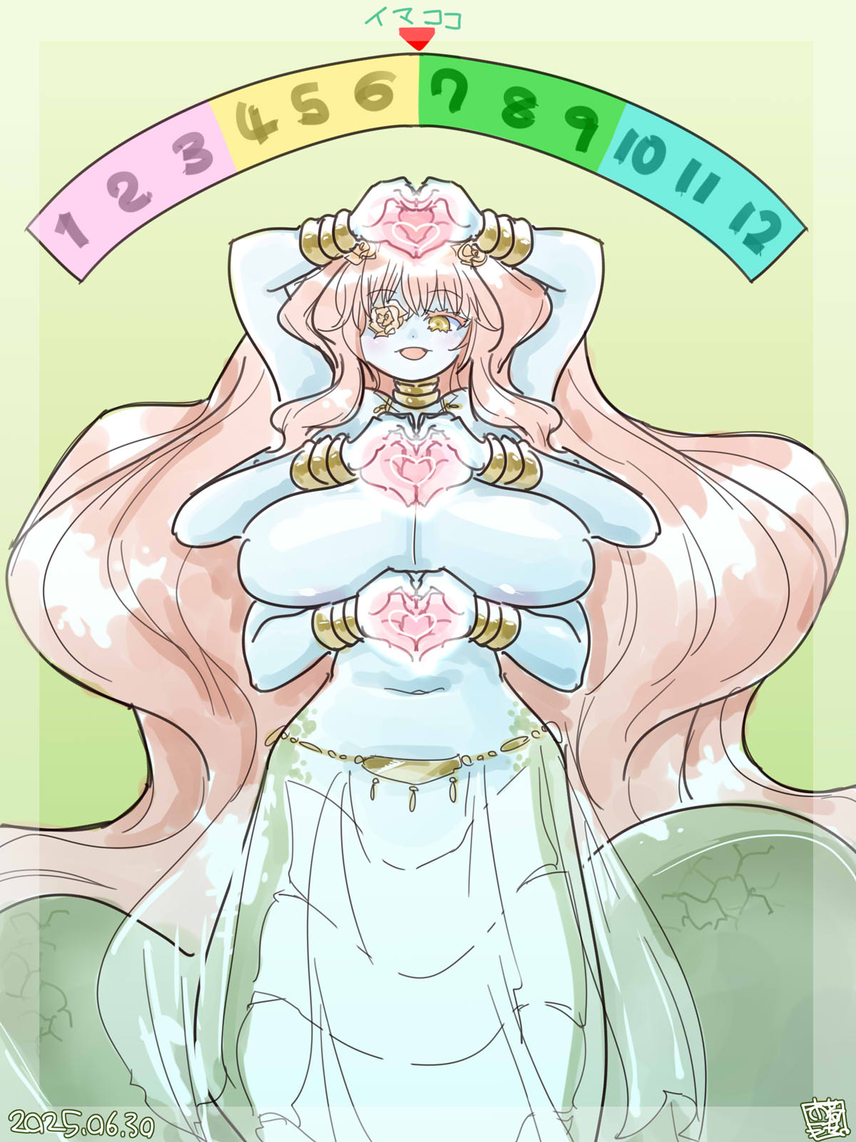 Tags: 1girlsblonde hairblushfemaleheartheart gestureheart symbolhuge breastsjewelrylong hairmonster girlmulti armmulti limbnagaparted lipssmilesnake girlsolovery long hair