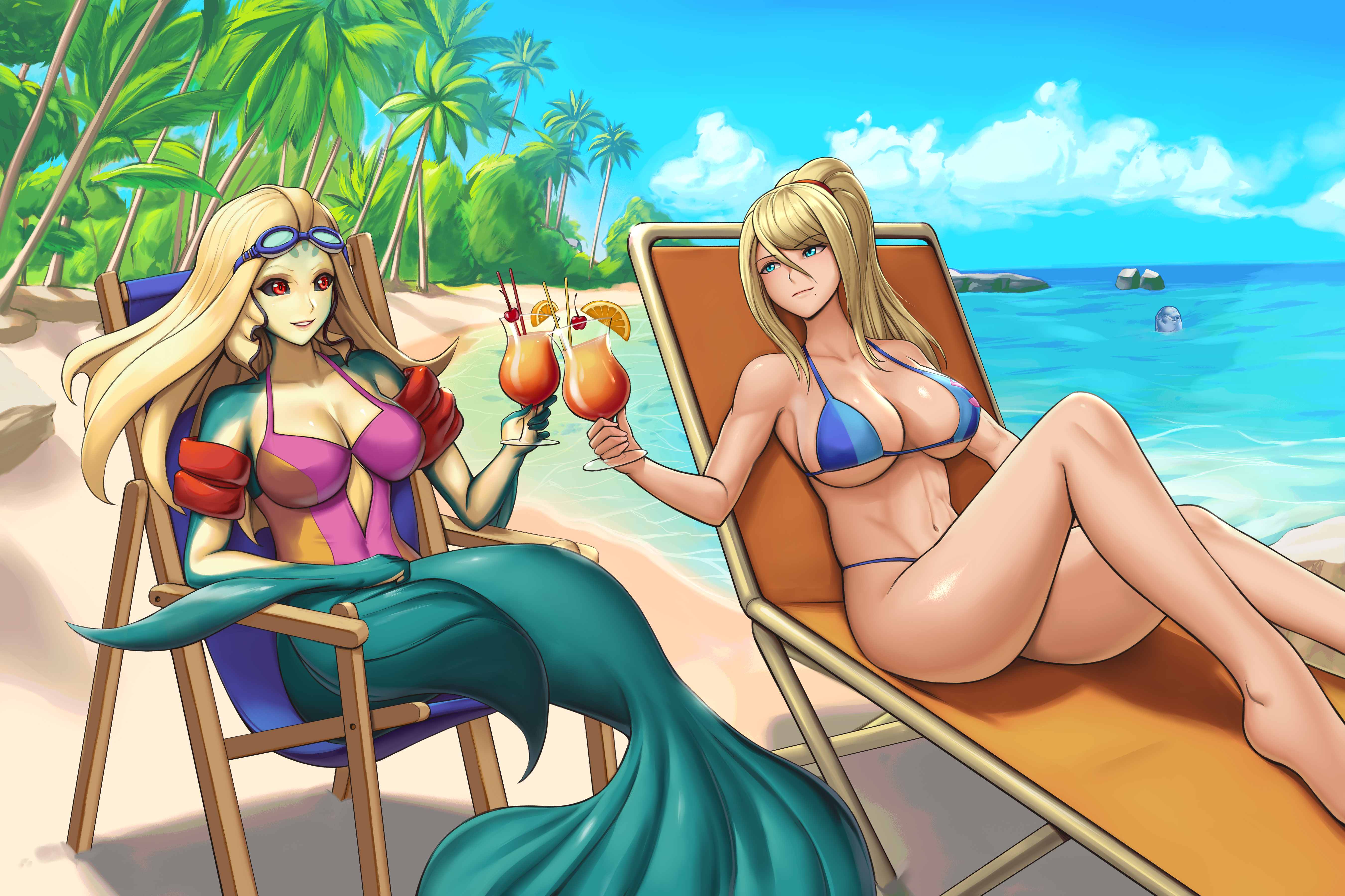 Tags: 2girlsalcoholalcoholic beveragealcoholic drinkbeauty markblack sclerablondeblonde hairblue eyescheerscrossover pairingcrossover shipcrossover shippingdrinkfemalelong hairmaraimerfolkmermaidmonster girlponytailred eyessplit formswimsuityuri