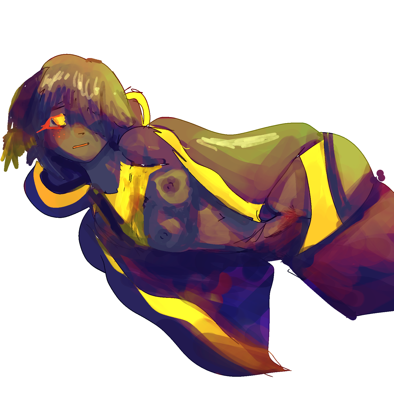 Tags: 1girlsblack bodybreastscloakclothes downfemalelaying downlaying on sideon floororange eyespanties downpussyround asswetwings on head
