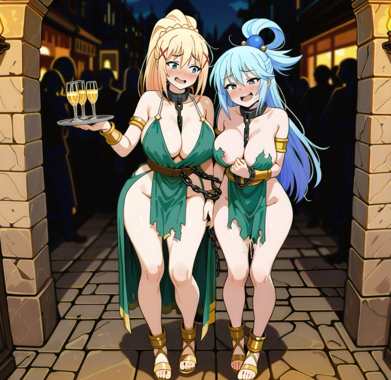 Tags: 2girlsbig breastsblonde femaleblonde hairblue eyesdrunkfemalelong hairponytailpublicripped clothingshyslave collarslave outfitslavegirltorn clothes
