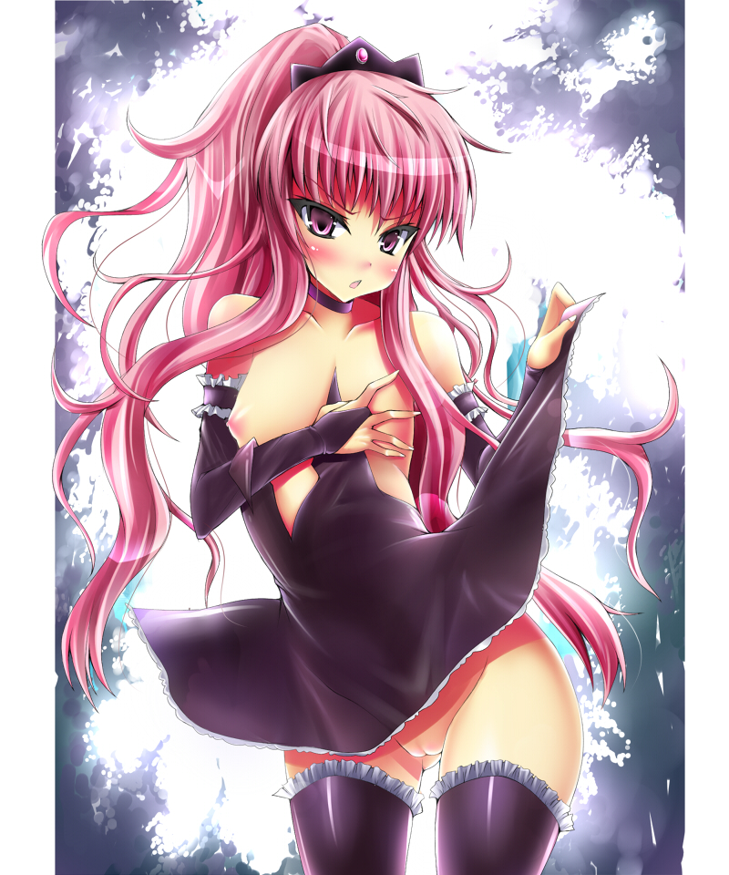Tags: 1girlsareolaeblushbottomless skirtbreastsclothingdetached sleevesdressdress liftelbow glovesembarrassedenferect nipplesfemalefemale onlyflat chestgloveslong hairlost clothesnipplesno pantiespink eyespink hairpussyshort dresssmall breastssolostandingstockingsthighhighstiarawardrobe malfunctionwide hipszettai ryouiki