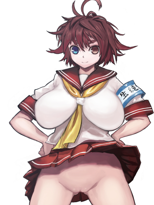 Tags: blue eyesbreastsbrown eyesbrown hairfemalehands on hipsheterochromiahumanlarge breastsno pantiespointy chinpussyschool uniformserafukushirtshort hairskirtskirt liftsolouniformwind lift