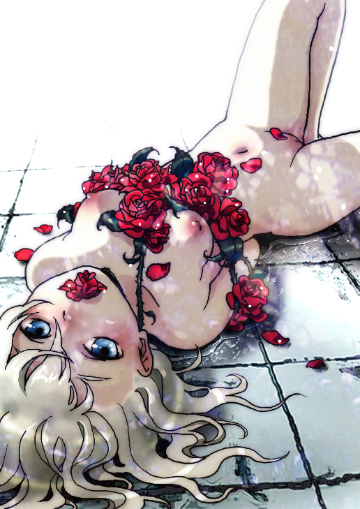 Tags: 1girlsblonde hairblue eyesbondagebreastsfemaleflowerlooking at viewerlyingnipplesnudepetalspussyroserosesshort hairsolostraight hair