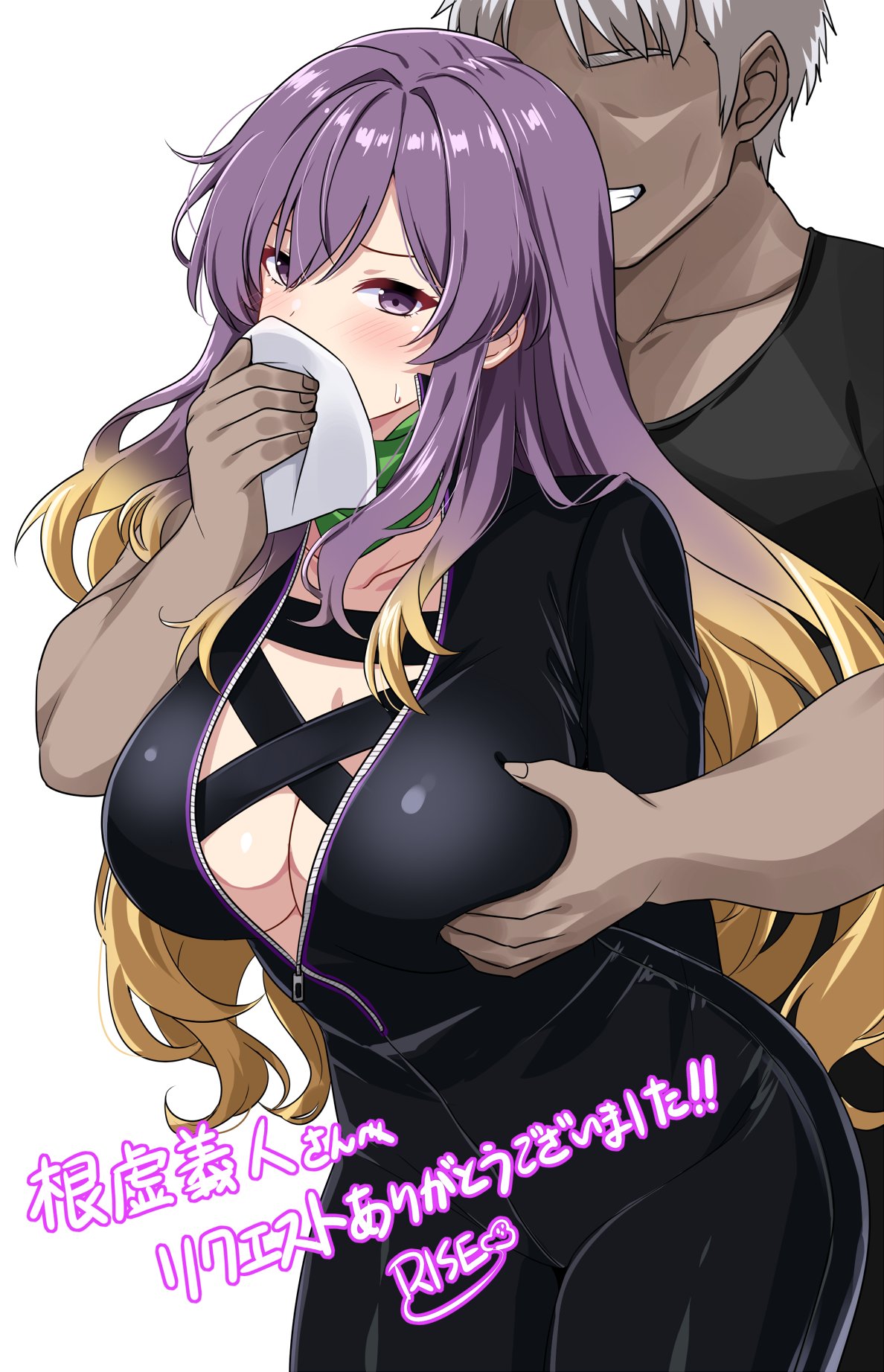 Tags: 1boyarms behind backbiker clothesbikesuitblack bodysuitblack shirtblonde hairblushbodysuitbreastscenter openingchloroformcleavagecross-laced clothesdark skindark-skinned malefemalegrabbing anothers breastgrabbing from behindgradient hairgringropinglarge breastslong hairmulticolored hairno eyesofficial alternate costumepurple eyespurple hairshirtshort hairsmilestraightsweatdropvery long hairwhite backgroundzipper