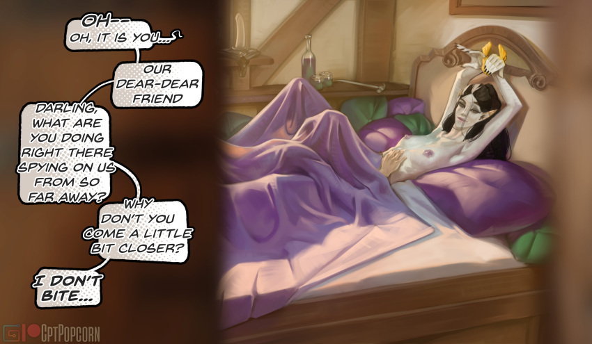 Tags: 2girlsabsurdresbedbed sheetbreastscptpopcorndialogueenglish textfantasyhighresimageboardimplied cunnilingusimplied sexlong hairlyingmultiple girlsnipplesnudeoriginalpillowRule34speech bubbletextwatermark