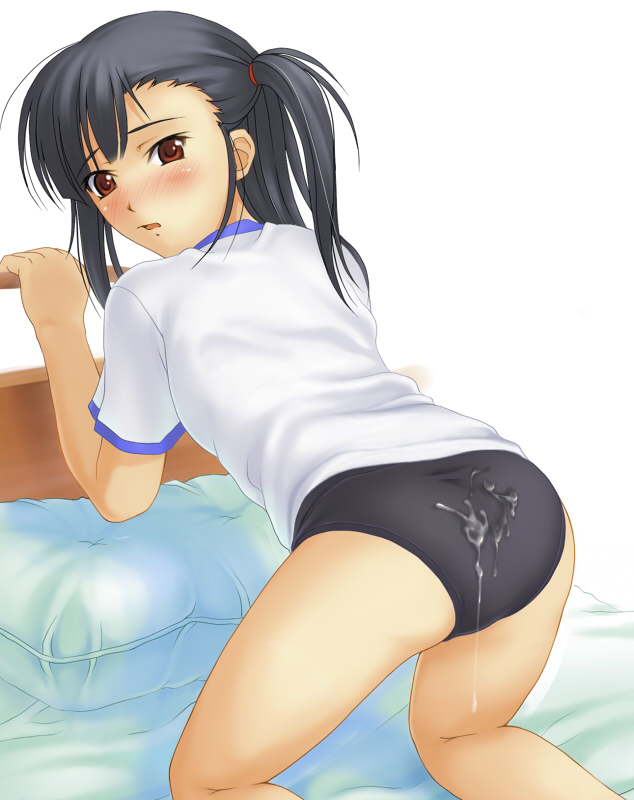 Tags: assasymmetrical bangsbangsbedblack hairblushbrown eyesburumaclothingcumcum on asscum on clothesfemalegym uniformlooking backside ponytail