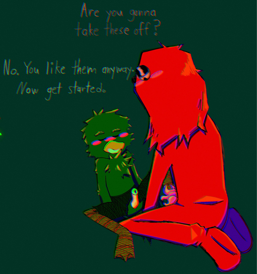 Tags: anatidanseriformanthroavianbeakbirdbird feetblushchest tuftclosed eyesclothingcoloreddialoguedon’t hug me i’m scaredduckduck guy (dhmis)duoenglish texterectioneyebrowsfacial tuftfeathersfishnetfishnet clothingfishnet legweargakuranchangenitalsgreen bodygreen feathershairhead tufthi reshumanoidimageboardlegwearlidded eyeslong hairmalemale/malemembrane (anatomy)morgan (dhmis)mostly nudemulti genitaliamulti penispenispenis tentaclesred bodyred guy (dhmis)red hairred skinRule34shadedsittingsmiletentacletexttightstoonytuftunknown speciesunusual anatomywebbed feet
