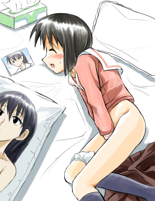 Tags: black hairblack kneehighsbob cutbottomlessclothed masturbationclothingdakimakura (object)femalefingeringfingering selfkneehighslime agezokomasturbationmultiple girlspantiespanties around one legpanty pullphoto (object)pillowschool uniformsockswhite backgroundwhite pantiesyuri