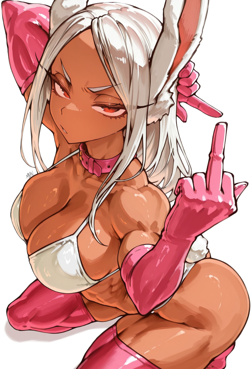 Tags: animal earsarm behind headassbrabreastschokercurvydark skindark-skinned femaleelbow glovesfemalefull bodygloveshalf-closed eyeslarge breastslong sidelocksmiddle fingermuscularmuscular femalemvwaifuspantiespink chokerpink glovespink thighhighsrabbit earsrabbit girlrabbit tailred eyesseizasidelockssittingsolotailthick thighsthighhighsthighsunderwearunderwear onlyv-shaped eyebrowswhite brawhite hairwhite pantieswide hips