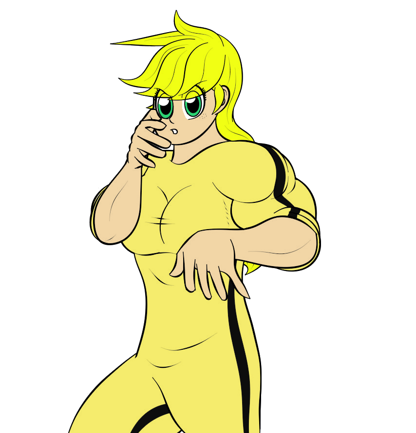 Tags: bicepsblonde hairbreastsbruce lee's jumpsuitfemalemusclesmuscularmuscular armsmuscular femalemuscular legsmuscular thighs