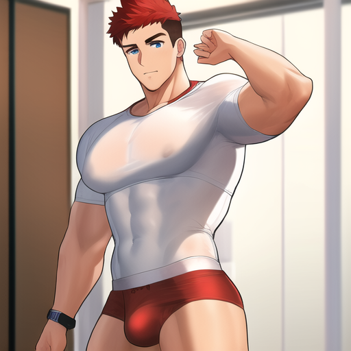 Tags: ai generatedanime stylebuffedbulgebulge through clothingdickimageboardmale onlynai diffusionoriginalred underwearRule34stable diffusionstrongwhite shirt