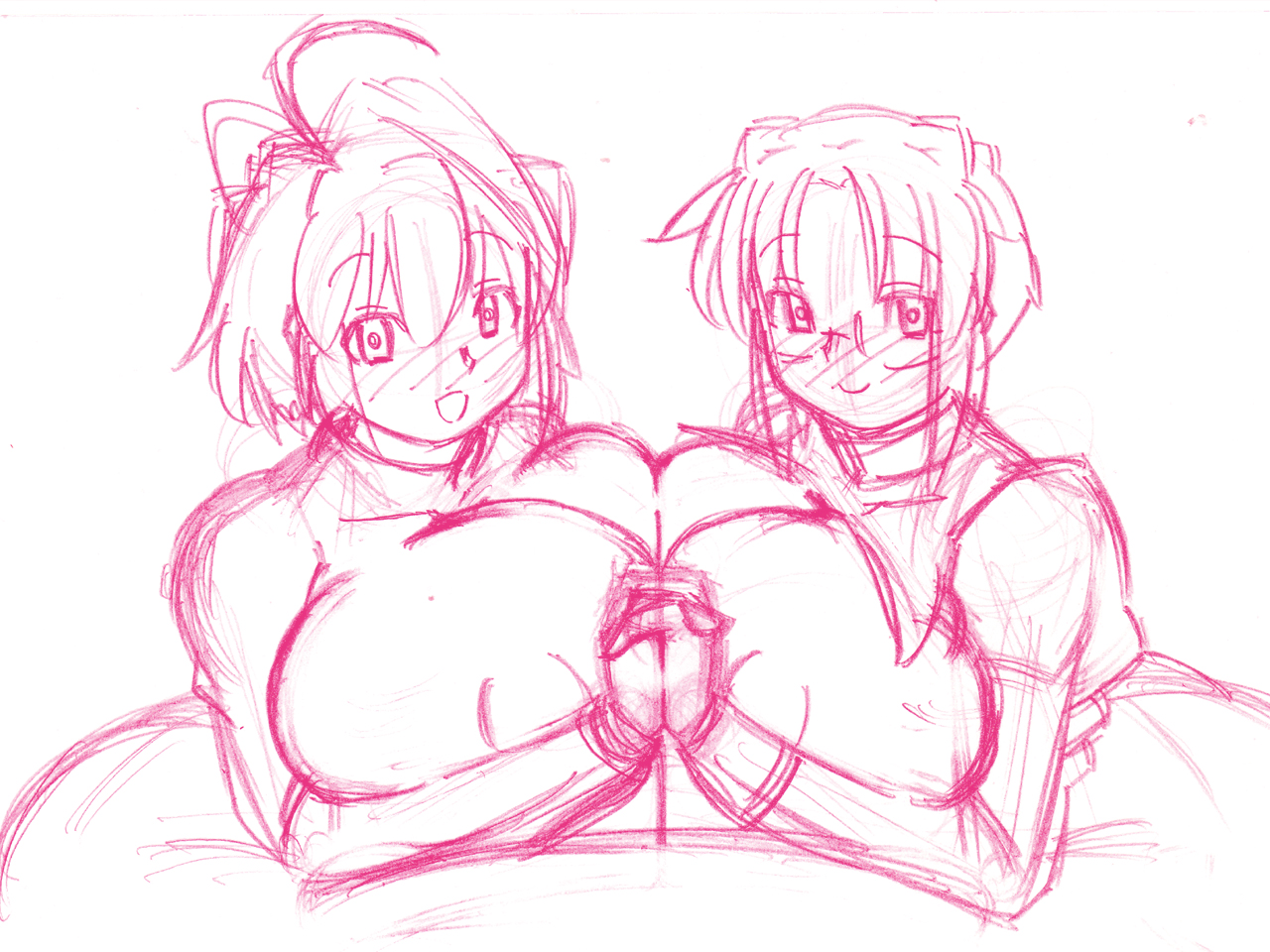 Tags: 2girlsahogebig breastsblushbreasts bigger than headbreasts focusenormous breastsglasseshand holdinghuge breastslarge breastslooking at viewerpressed againstpressing breastspressing breasts togethershort hairsmiletop heavy