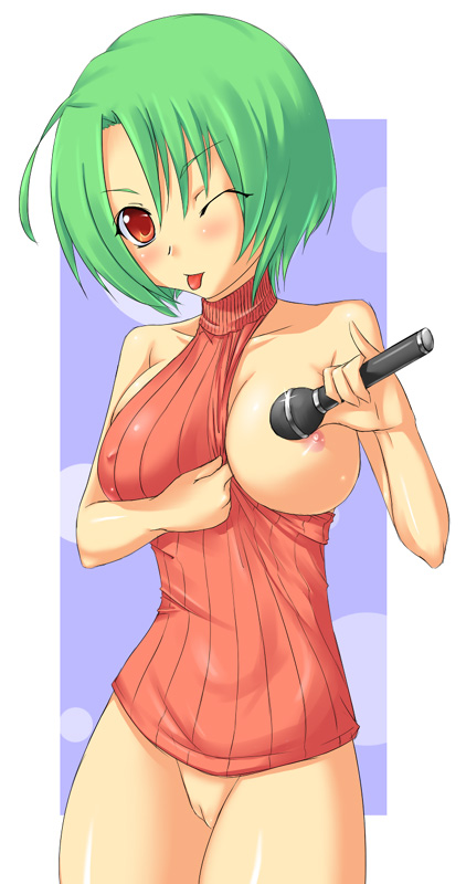 Tags: :p1girlsbottomlessbreast slipbreastserect nipplesfemalegreen hairmicrophonenipplesno pantiesone breast outpussyred eyesshort hairsolotongueturtleneckwink