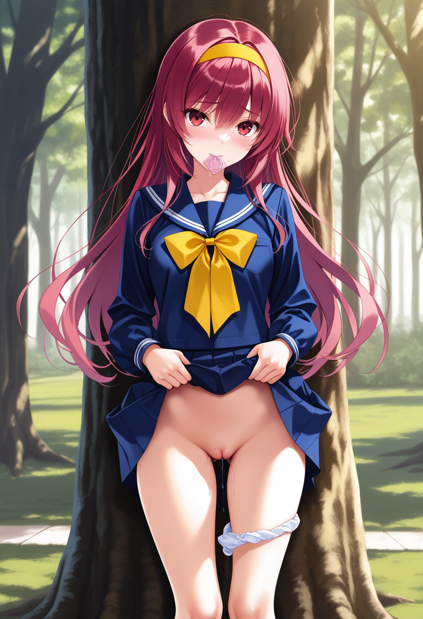 Tags: blue serafukucondom in mouthlong hairpanties around one legpussypussy juicered eyesred hairshyskirt liftyellow bowyellow hairband