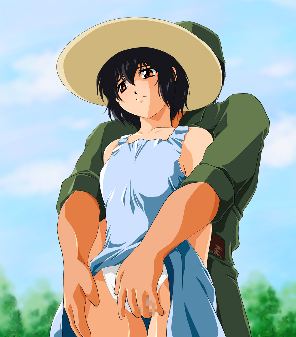 Tags: black hairbob cutbrown eyesclothingdressdress liftfaceless malefingeringfingering from behindfingering through pantiesfrom behindhatmaleoutdoorspantiesreach aroundshort hairsoldierstraw hatsundressthigh gapthighsunderwearwhite panties