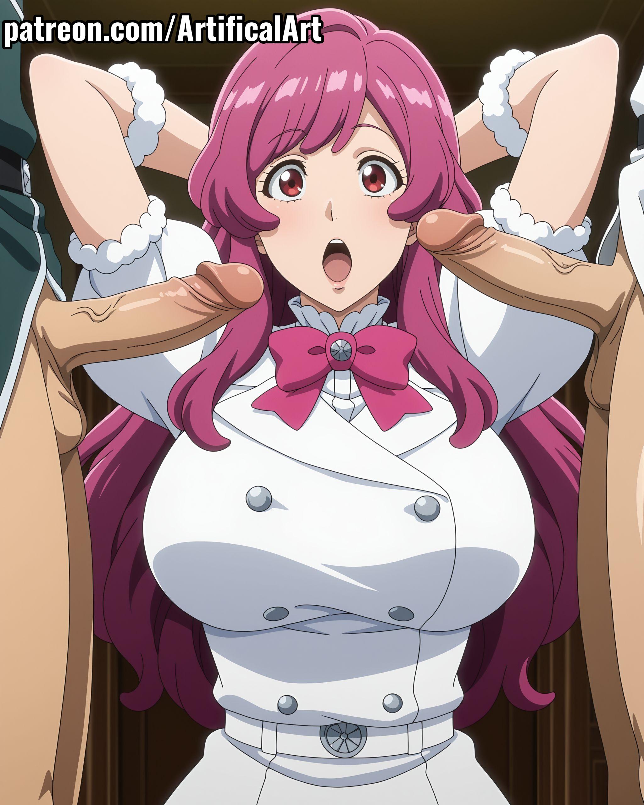 Tags: 1girls2boysanime girlballsbig breastsbowtiegroup sexhands behind headlight skinlight-skinned femalelong hairopen mouthpenisperfect bodypink bowpink bowtiepink hairquincy bitchred eyessternritter uniformwandenreichwandenreich uniform