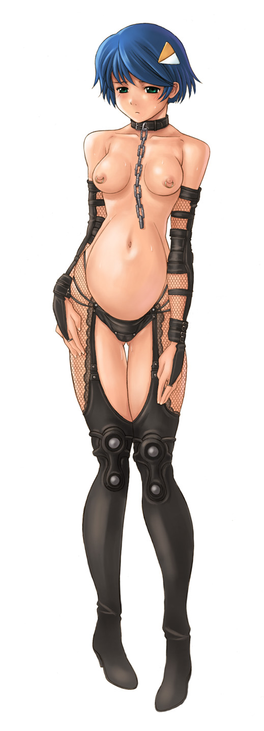 Tags: 1girlsblue hairblushbreastschainscollarfemalefemale onlygreen eyeslegsmedium breastsnavelnipple piercingnipple ringsnipplespantiespiercingpregnantshort blue hairshort hairslavesmall breastssolostockingsthighhighstopless