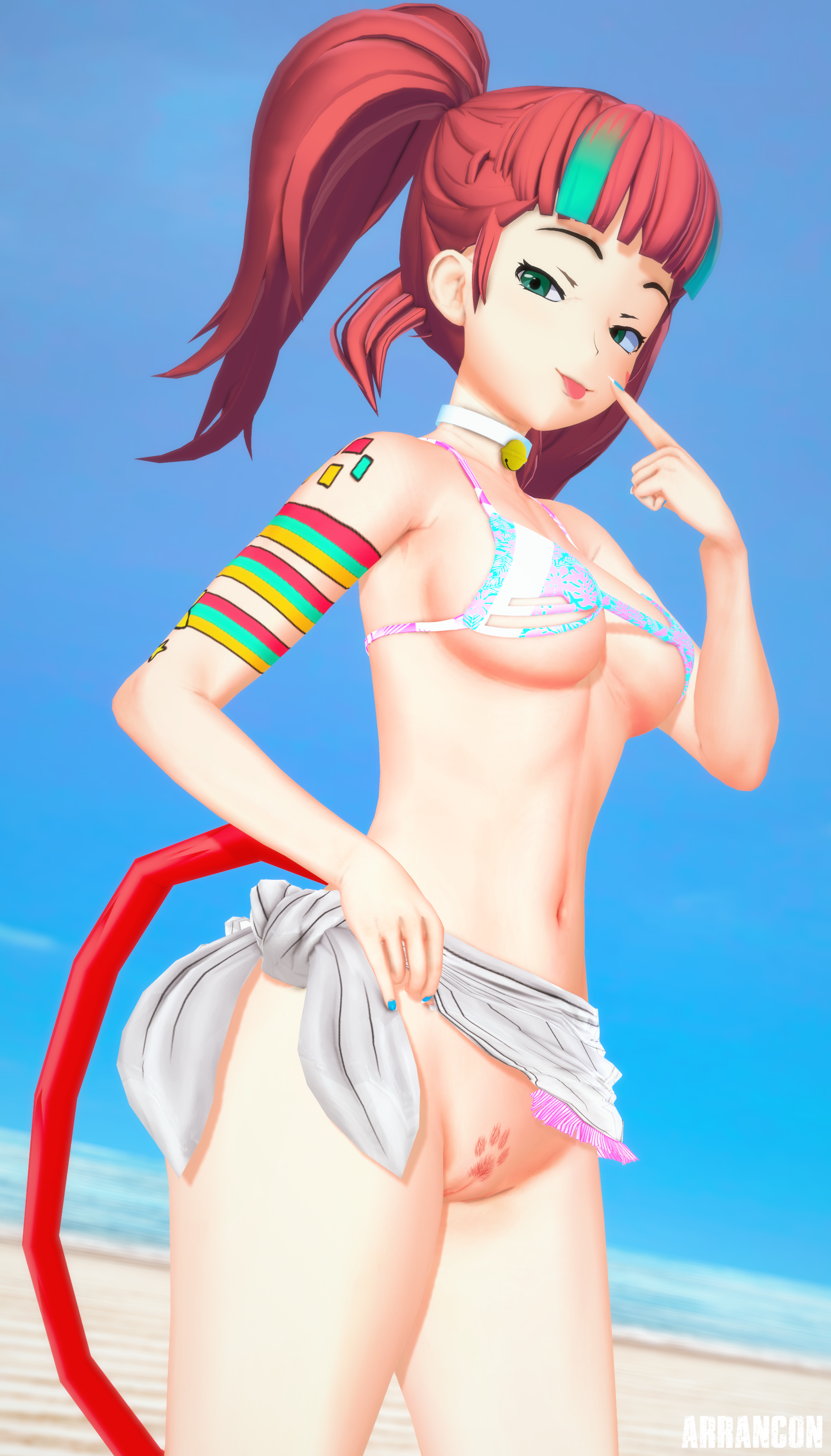 Tags: 1girlsbikinibikini topcat tailfaunusgreen eyesmedium breastsreddish hairshowing pussysolo femalesticking out tonguetongue outtwintails