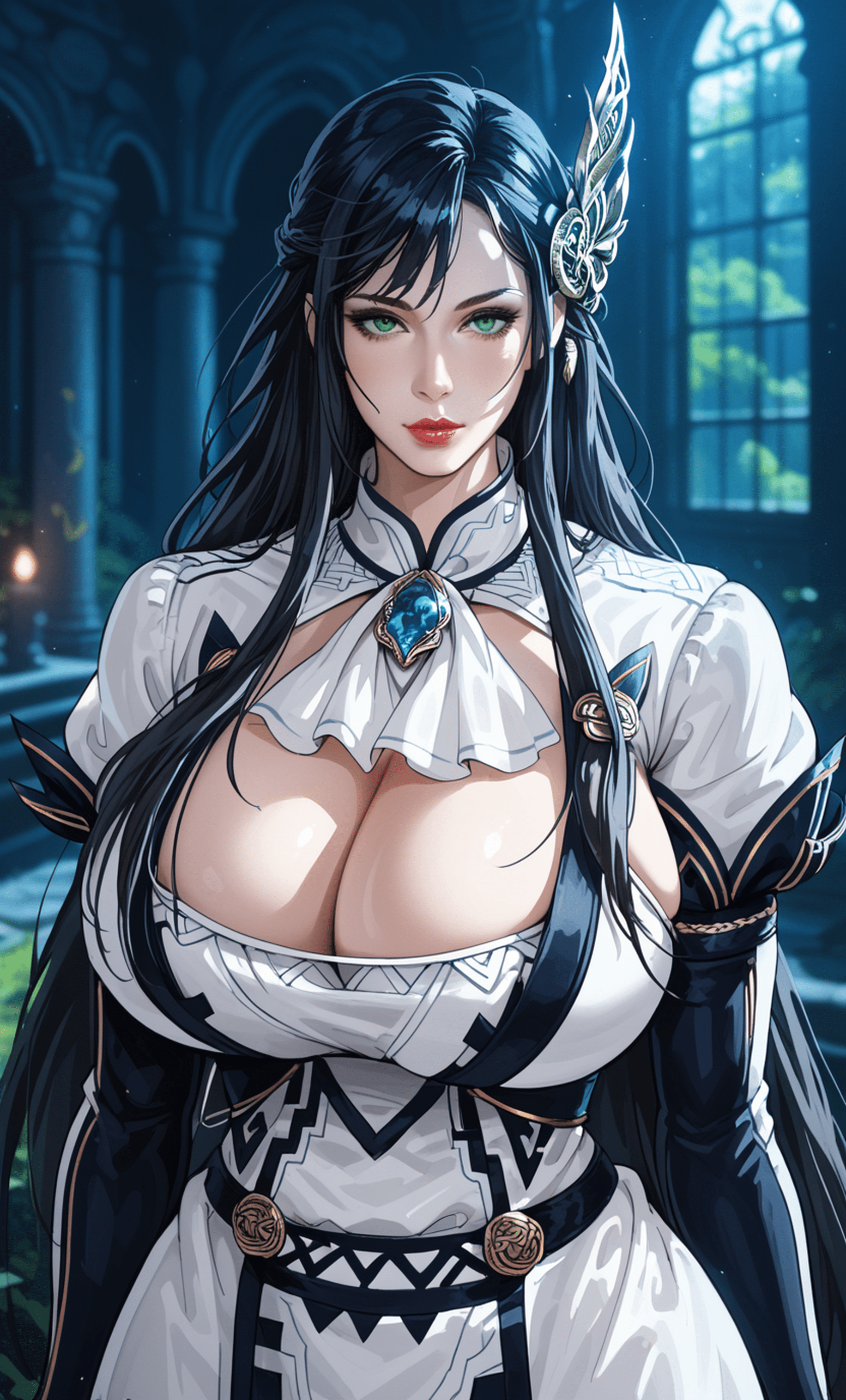 Tags: black hairgreen eyeshair ornamenthuge breastslong sleevesmature femalependantrecordthiccthick thighswhite dresswide hips