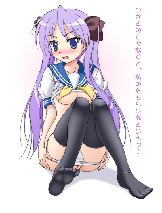 Tags: 1girlsblue eyesblushbreastsfeetfemalefemale onlyhumanlong hairpantiespanty pullpurple hairpussyribbonryouou school uniformserafukushirt liftsittingsolosweatthighhighstied hairtwintailsunderboobunderwearundressing