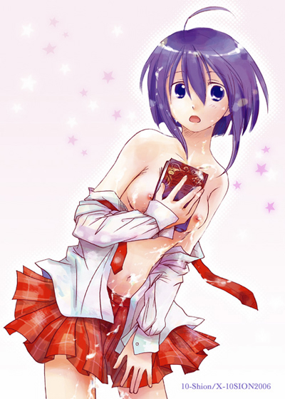 Tags: bare shouldersbetween breastsblue eyesbookbreastsclothingcumfemaleobject between breastsopen clothesopen shirtplaidplaid skirtpurple hairshirtskirtsmall breastssolotartan