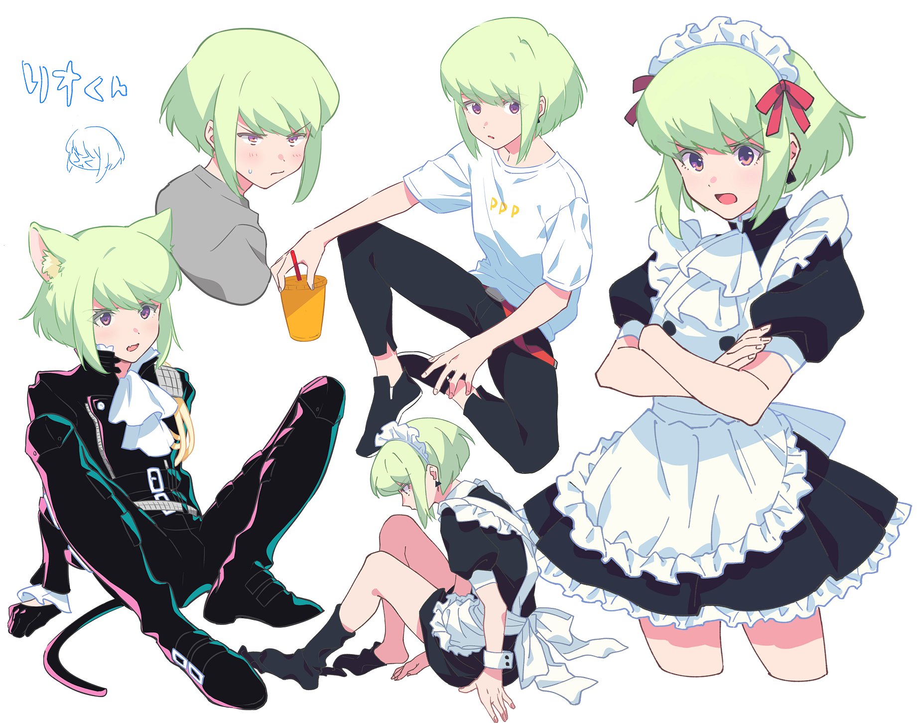 Tags: 1boyandrogynousblushbob cutcat earscat tailcatboyclothedclothingcrossdressingembarrassedfemboyfully clothedmaidmaid headdressmaid uniformshort hairshyslimslim maleslim waistsolosuggestive posetwink