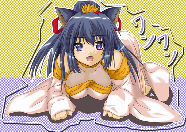 Tags: 1girlsall foursanimal earsblue eyesblue hairbreastscat earsfemalehanging breastsjapanese clotheskimonolong hairmikosolo