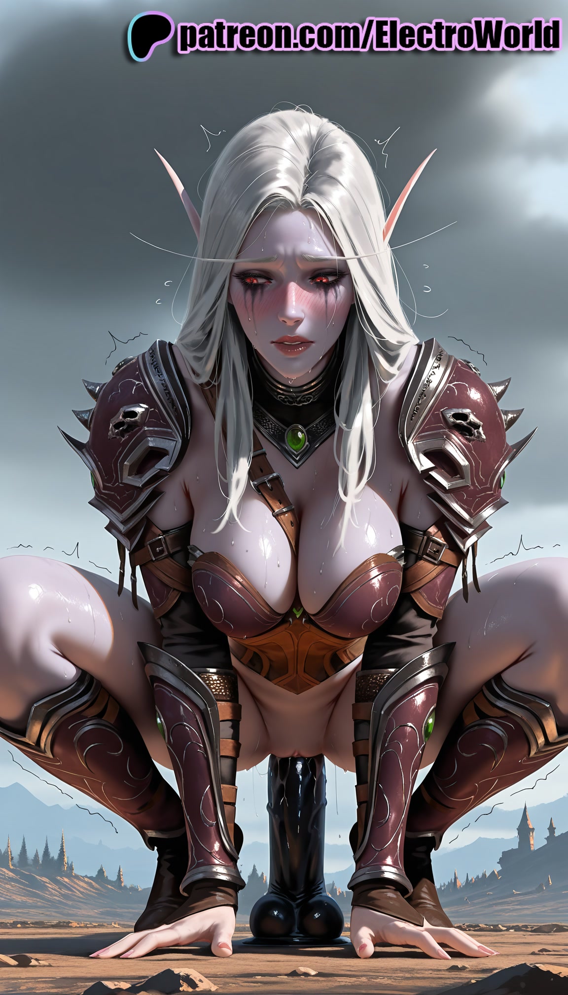 Tags: 1girlsarmorbreastsbustchestelffemalelong hairmotion linespauldronspointy earspussy juicerainred eyesRule34shoulder armortremblingwhite hair