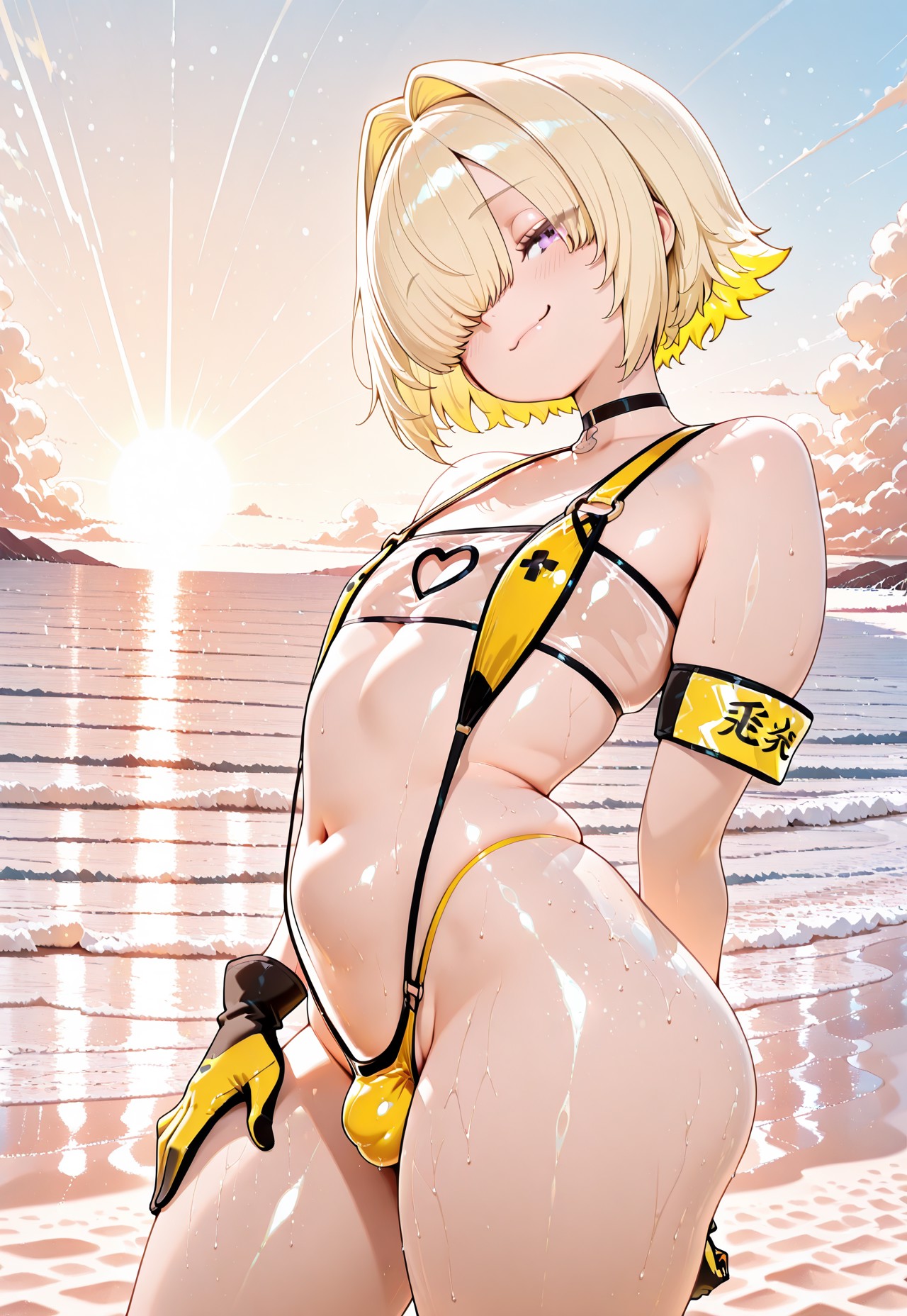Tags: 1boy1femboyareolaareola slipassballsbeachbellybig assblack chokerblonde hairbulgechokercrossdressingcurvyeye visible through hairfemboyfeminine malegirlygloveshair over one eyehourglass figurelooking at viewerlul1zsnaveloutdoorsoutsideplumppurple eyesslingshot swimsuitsmugsmug smilesolostandingsunsetsweatsweatdropsweatyswimsuitswimweartesticlesthick thighsthighstranslucent swimweartrapyellow glovesyellow slingshot swimsuit