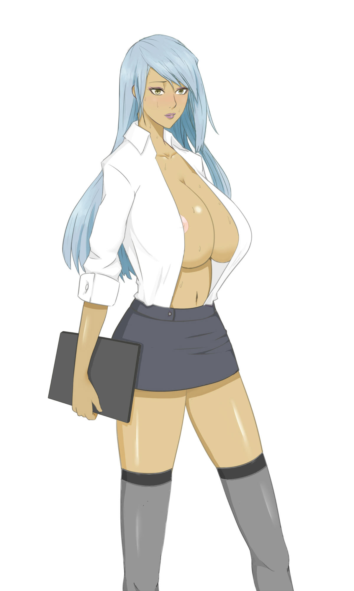 Tags: black legwearblack thighhighsblushbreastsclipboarddress shirtfemalehazel eyeshuge breastslong hairmidriffminiskirtnipple slipnipplesopen clothesopen shirtshirtsilver hairskirtsolosweatthighhighswhite shirtyellow eyes