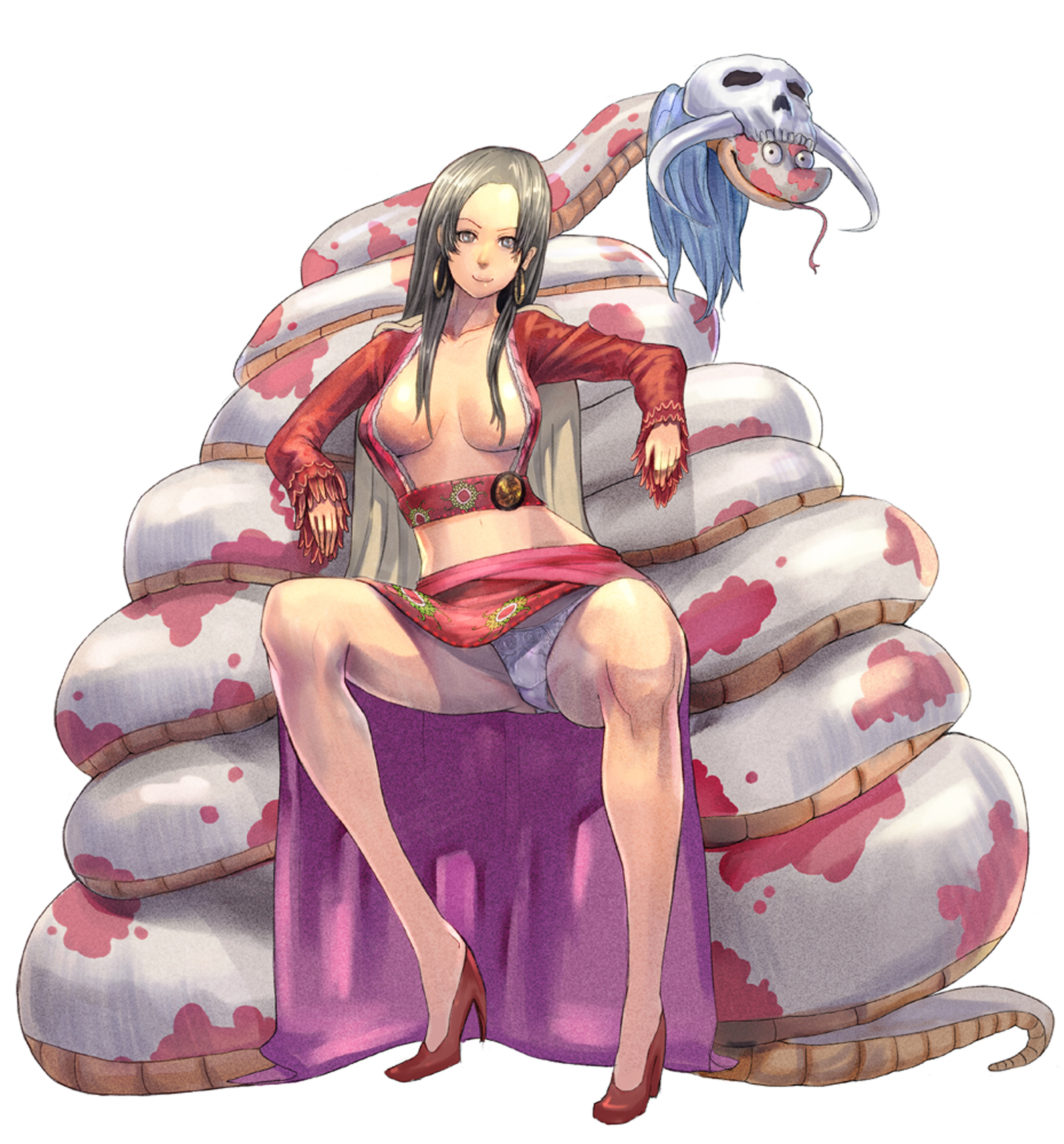 Tags: 1girlsbreastscapecleavageclothingearringsfemalefemale focusfemale onlyjewelrylong hairpantiespantyshotsnakesolo focusstraight hairunderwearupskirt