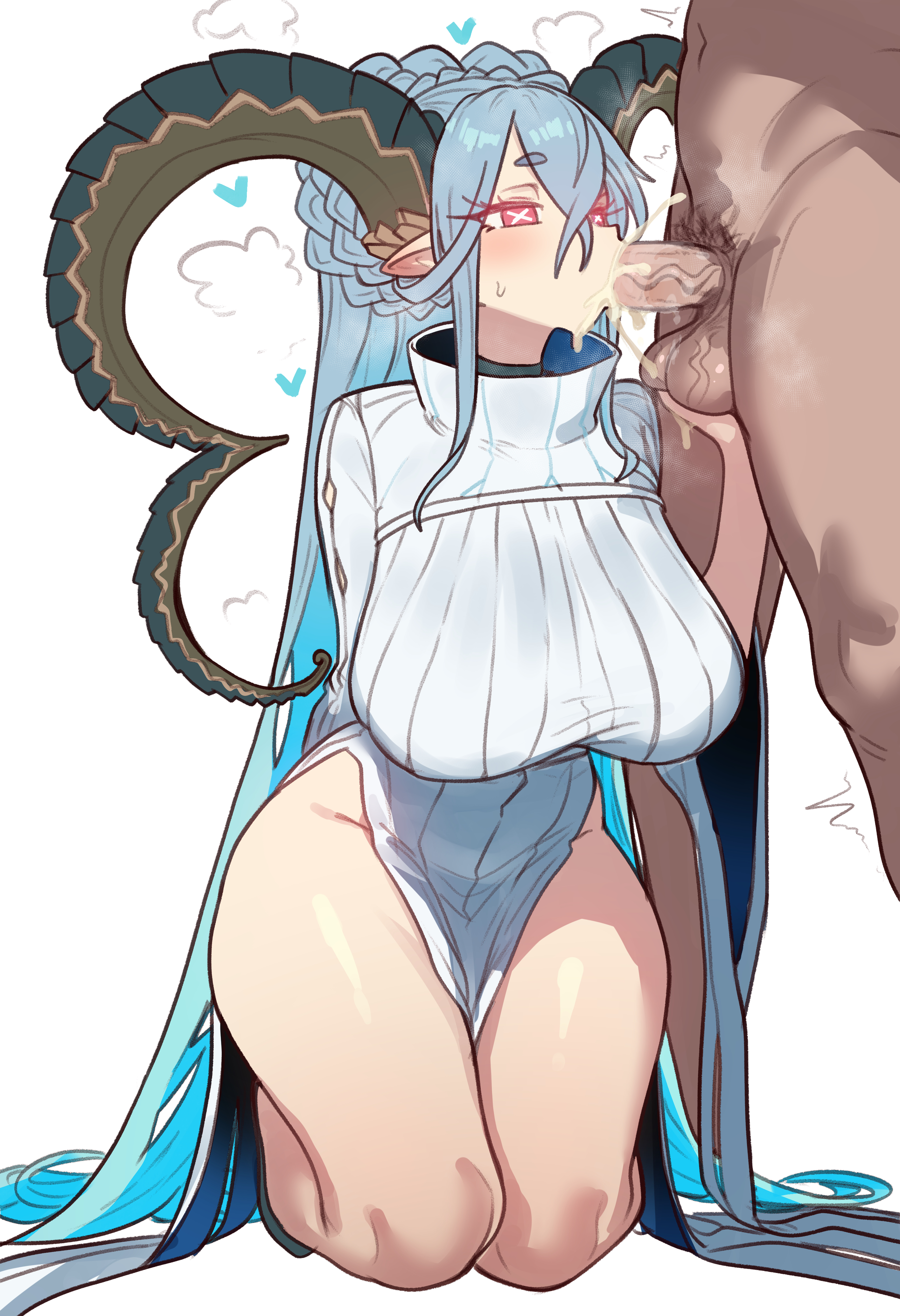 Tags: 1boyblue hairblushbreastscumcum in mouthcurled hornsdressfellatiofemalehornshuge breastskneelinglong hairoralpenispointy earsred eyessidelocksstraightsymbol-shaped pupilstiamat (third ascension) (fate/grand order arcade)very long hairwhite backgroundwhite dressx-shaped pupils