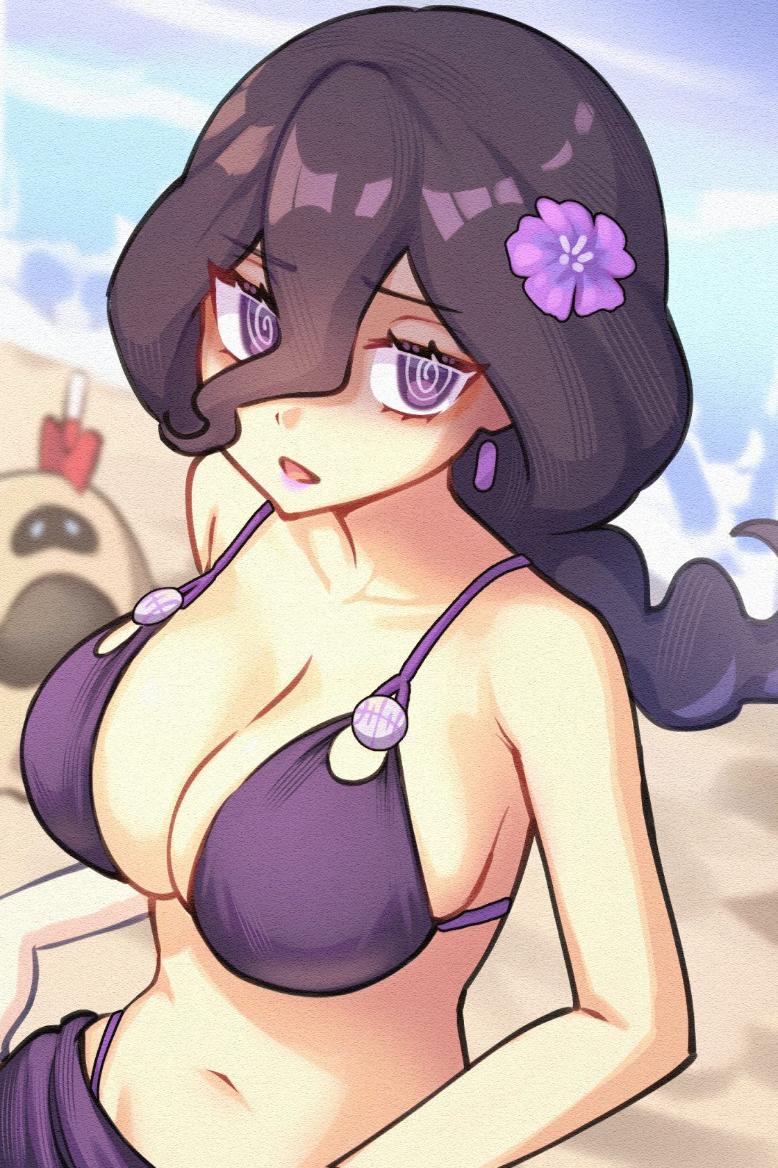 Tags: alternate breast size (larger)alternate costumebare shouldersbeachbikiniblack hairbreastscleavagecollarboneearringsfemaleflowerhair between eyeshair flowerhair ornamentjewelrylarge breastslong hairlooking at vieweropen mouthpurple bikinipurple eyespurple sarongRule34sandsand castlesand sculpturesarongsmileswimsuittrowelwater