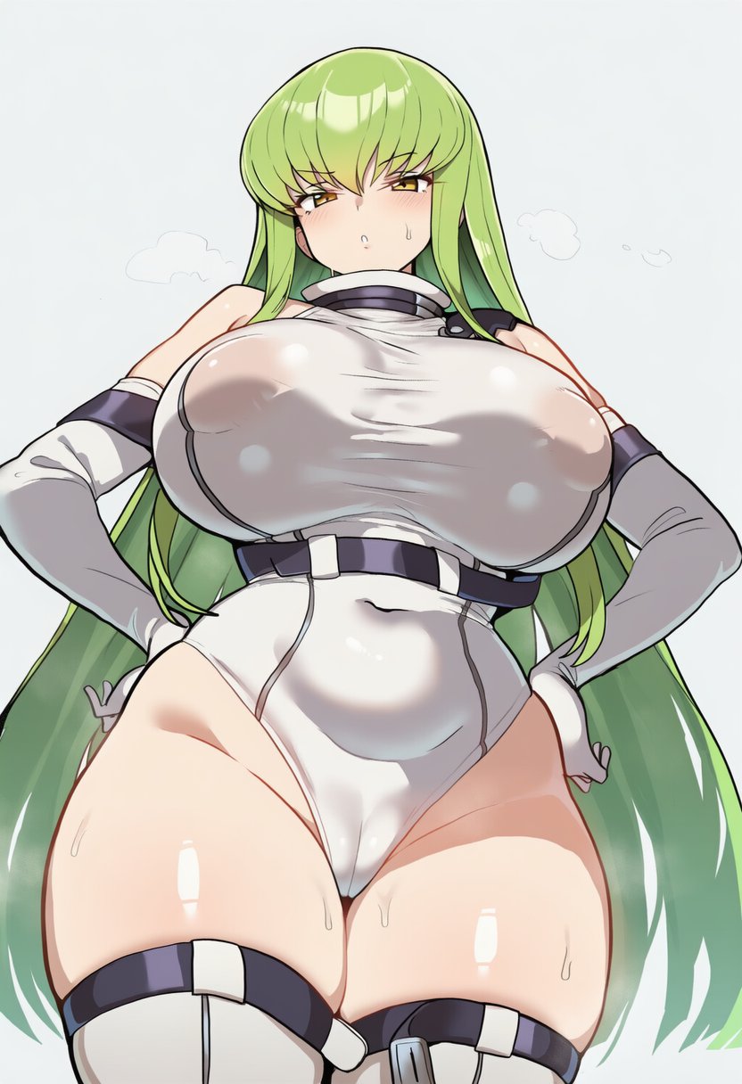 Tags: 1girlsarmwearbelow viewbig breastscameltoeglovesgreen hairhands on hipslegwearlooking at viewerlooking downlooking down at viewernipplesnipples visible through clothingsolo femalestandingthighhighsviewed from belowwhite armwearwhite backgroundwhite glovesyellow eyes