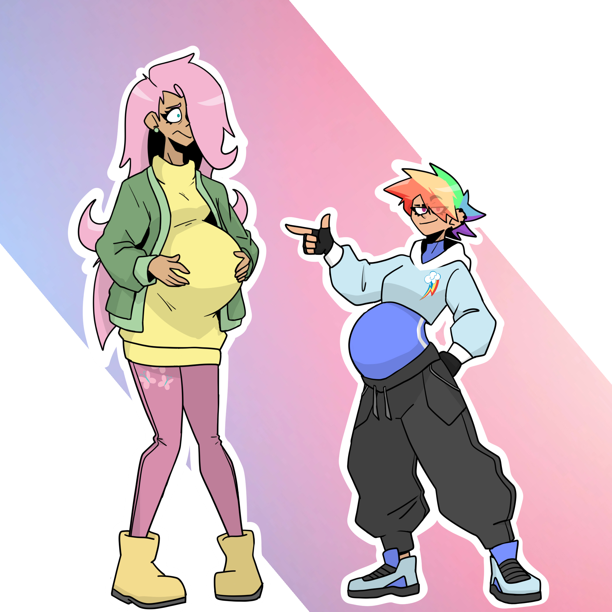 Tags: humanizationjacketmulticolored hairmultiple girlsmultiple pregnanciespink hairpregnantpregnant bellypregnant female
