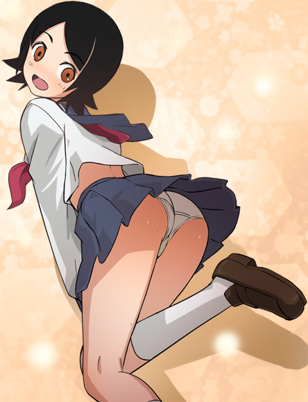 Tags: 1girlsasian femalebangsblack hairblushfemalefemale onlylight skinlight-skinned femalelong sockslooking backminiskirtnecktieno noseopen mouthpantiespantyshotparted bangsschool uniformseifukuserafukushockedshocked expressionshort hairskirtsockssolospiky hairunderwearwhite pantieswhite socks