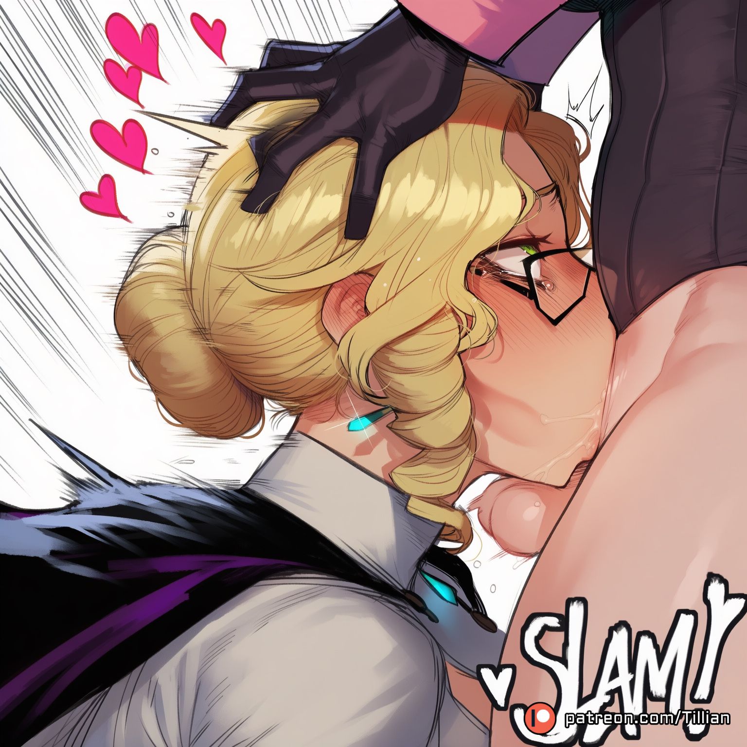 Tags: 2girlsblack glovesblack-framed eyewearblonde hairblushbottomlesscapedeepthroatdrill hairear blushearringsfellatiofrom sidefuta with femalefutanariglassesglovesgreen eyeshair bunhand on another's headhead grabheartheart-shaped pupilsirrumatiojewelrymotion linesmultiple girlsnose blushoralpenisrolling eyesrunny makeupsalivasingle hair bunsolo focusspeed linestearing uptearstesticles