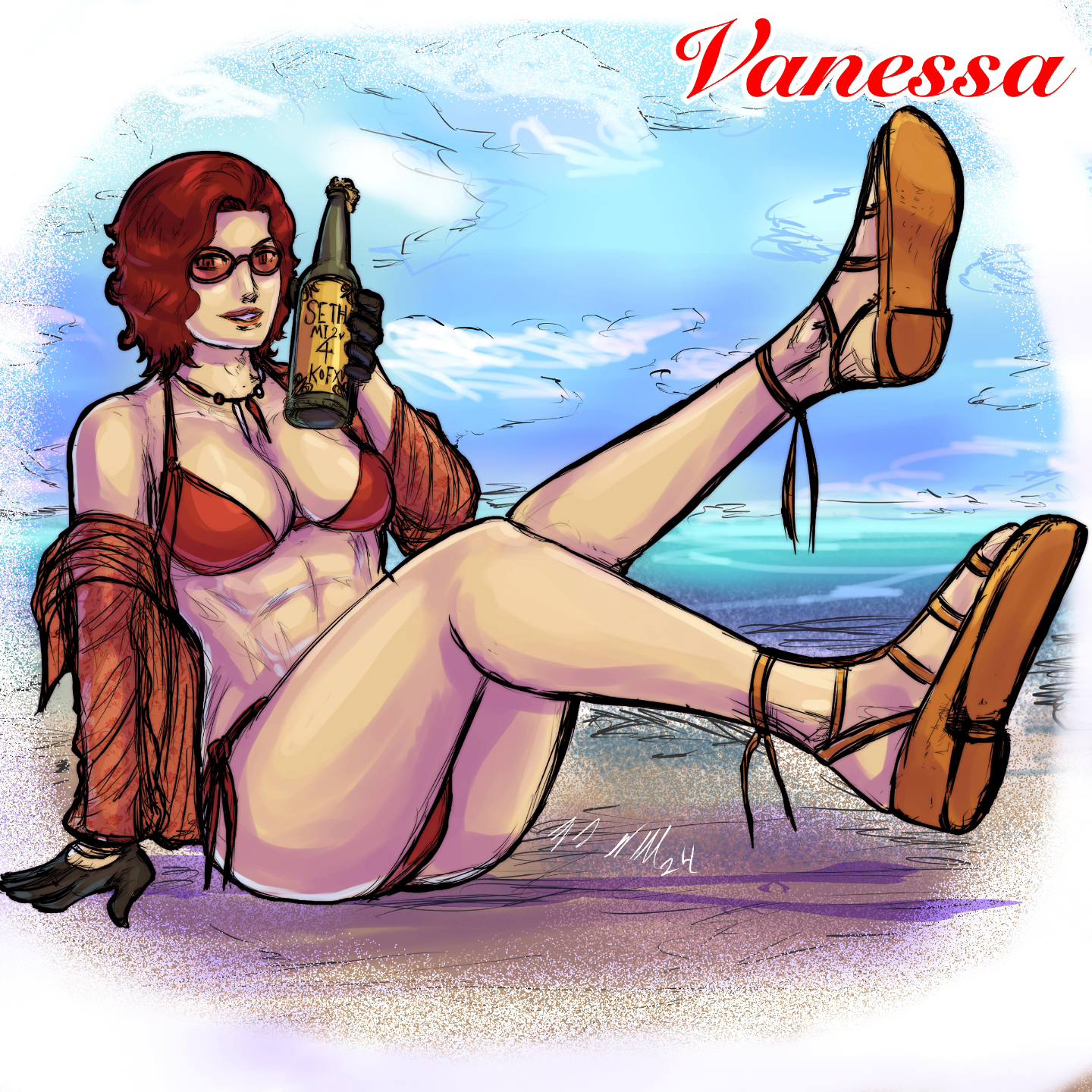 Tags: 1girlsbeachbig breastsbikinibustybusty femalecurvycurvy femalefemalefemale focusglassesgloveslegs uplight skinlight-skinned femalelooking at vieweropen clothesoutdoorspale skinpale-skinned femalered bikinired eyesred hairshort hairsittingsmilingthick thighsthighstonedtoned femalewide hips