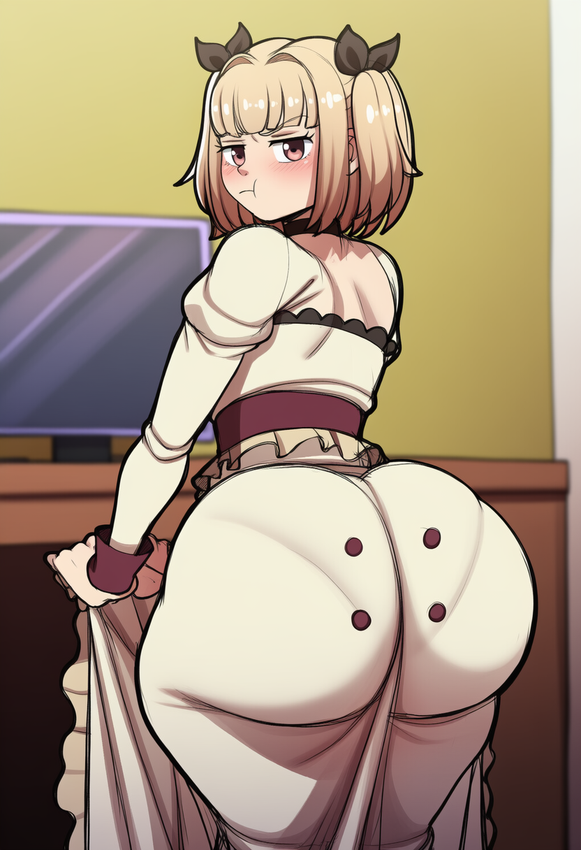Tags: 1girlsassbangsbig assblonde hairbottom heavybubble buttdressfemaleflat chesthuge asslong dresspoutred eyesskindentationthick thighsthighstwo side upwide hips