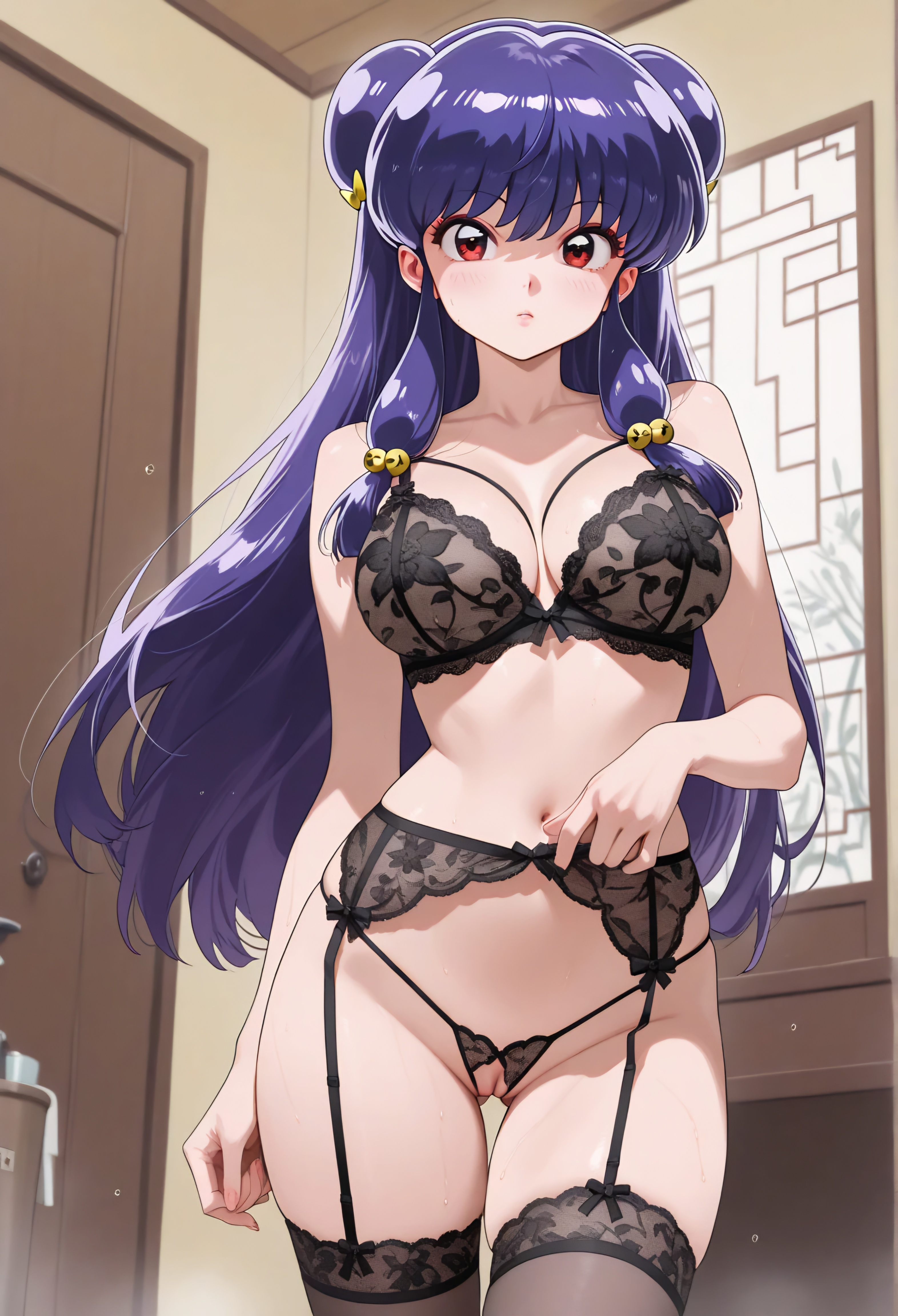 Tags: bedroombig breastsblack brablack lingeriebralingerielingerie bralingerie pantieslooking at viewermedium breastspale skinpale-skinned femalepartially clothedpartially clothed femalepinup poseposingposing for pictureposing for the viewerred eyesstandingstockings