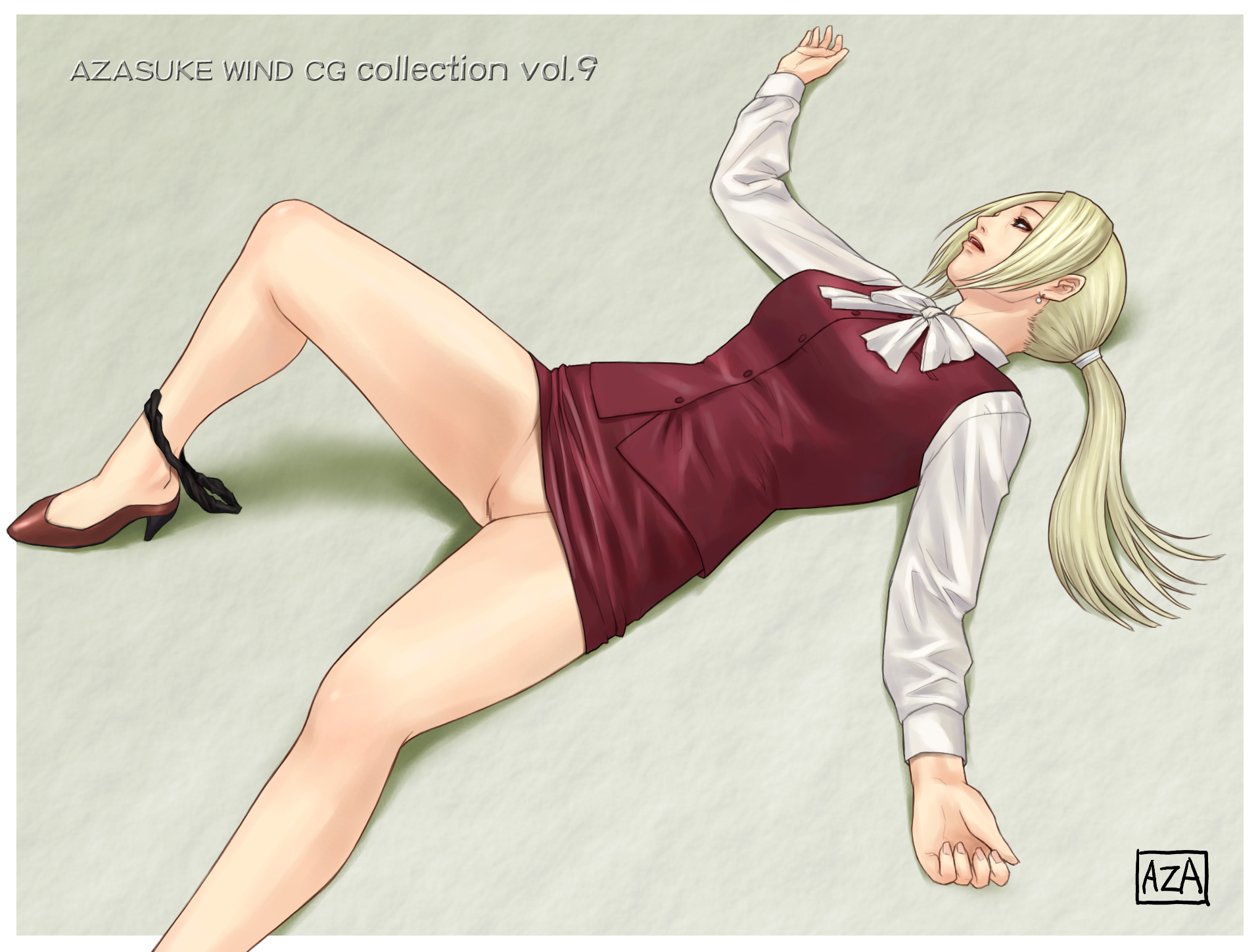 Tags: black pantiesblonde hairblue eyesfemaleformalhigh heelsleg liftlong hairlyingon backpantiespanties around legpanties around one legponytailpussyshaved pussyshoesskirtskirt liftsolosuittied hairunderwear