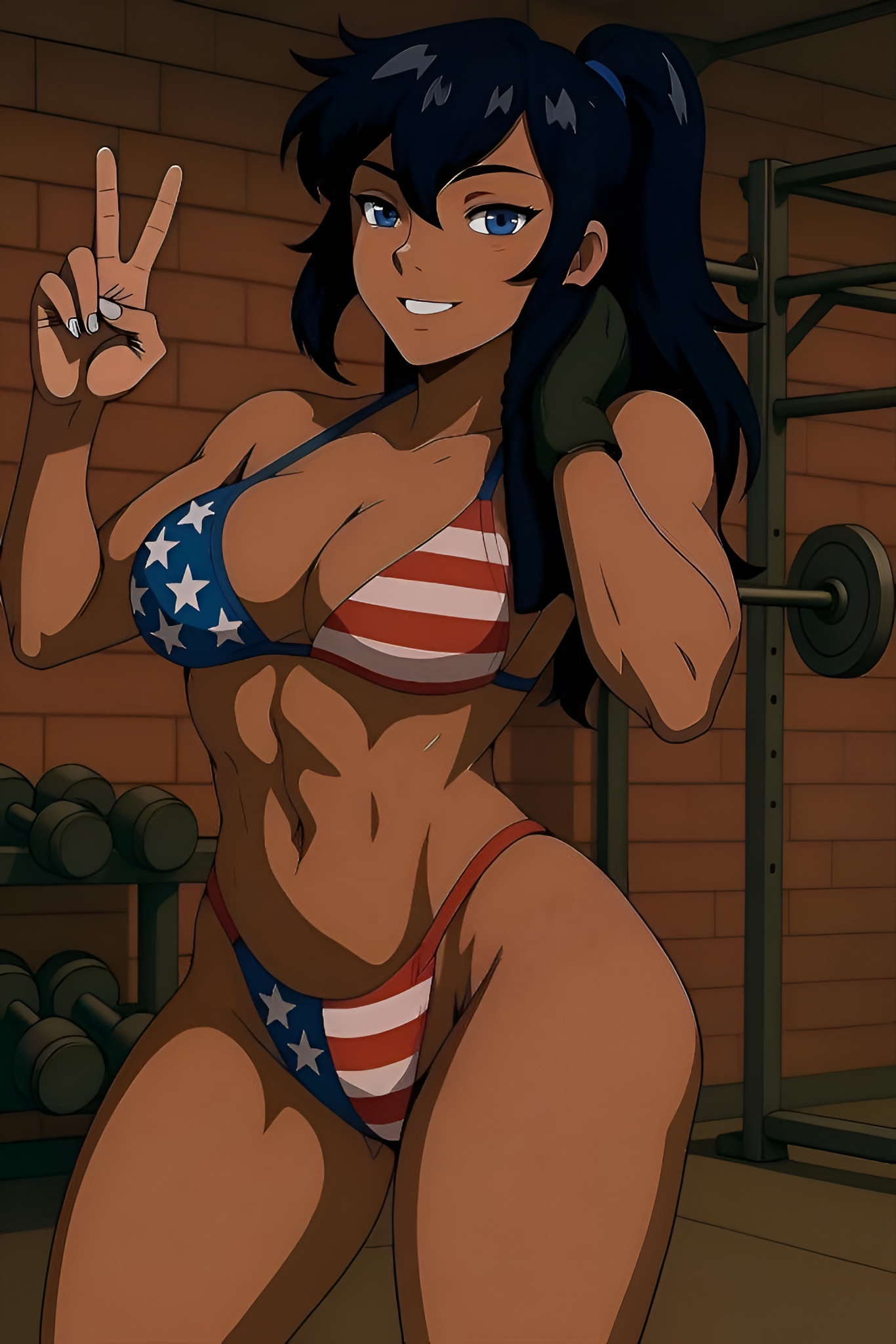 Tags: 1girlsamericanamerican femaleamerican flag bikiniamerican flag bikini bottomamerican flag bikini topamerican flag printathleticathletic femalebikiniblack hairblue eyesblue hair tiedark skindark-skinned femalefitfit femaleglovegymhair tiehireshourglass figureindependence dayindoorsnarrow waistpatrioticpatriotismpeace signpony tailpublicsmilingsolosolo femalestarsstars and stripesstripestoned bodytoned femaleunited statesunited states of americawearing glovewide hips