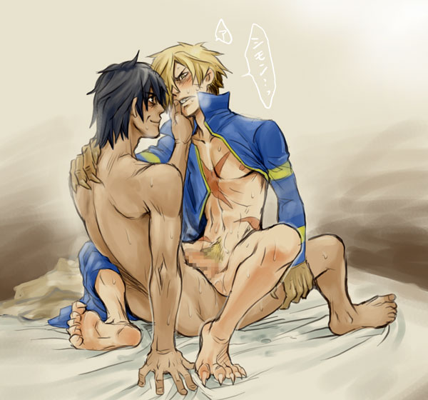 Tags: 2boysanalbarefootbed sheetblonde hairblue hairclawsgayhair over one eyehand on facein lapmalemale onlymultiple boysnudeoldopen clothesopen jacketpenispubic hairscarsexsittingyaoi